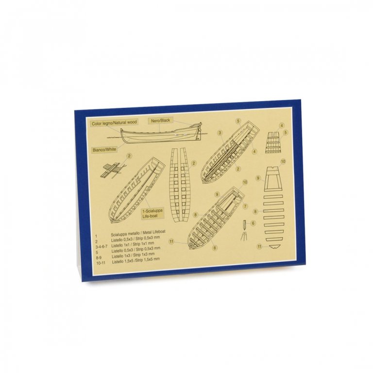 Корпус из металла хорошо детализирован. Борта и внутренние детали из ореха. В комплекте инструкция по сборке.