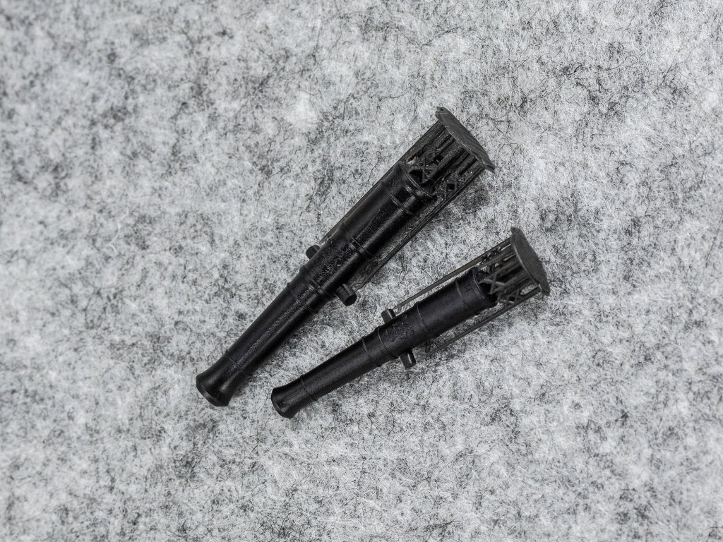 Гармати виготовлені з полімерної смоли способом 3D друку. Добре обробляються та фарбуються за необхідності.