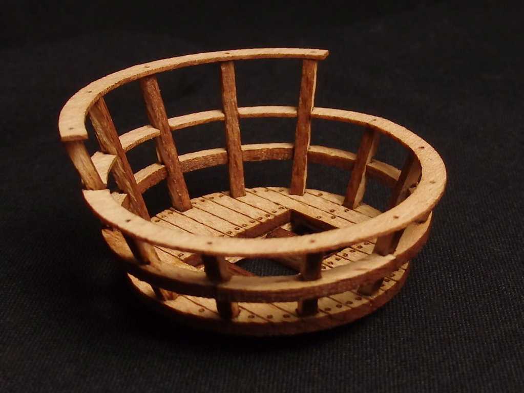 Мининабор для самостоятельносй сборки марсовой площадки (корзины) "воронье гнездо" для Вашей модели парусника. Основным отличием таких площадок на кораблях было то, что у обычной марсовой площадки бортик очень низкий, а в данной модификации присутствует полноценный планширь.