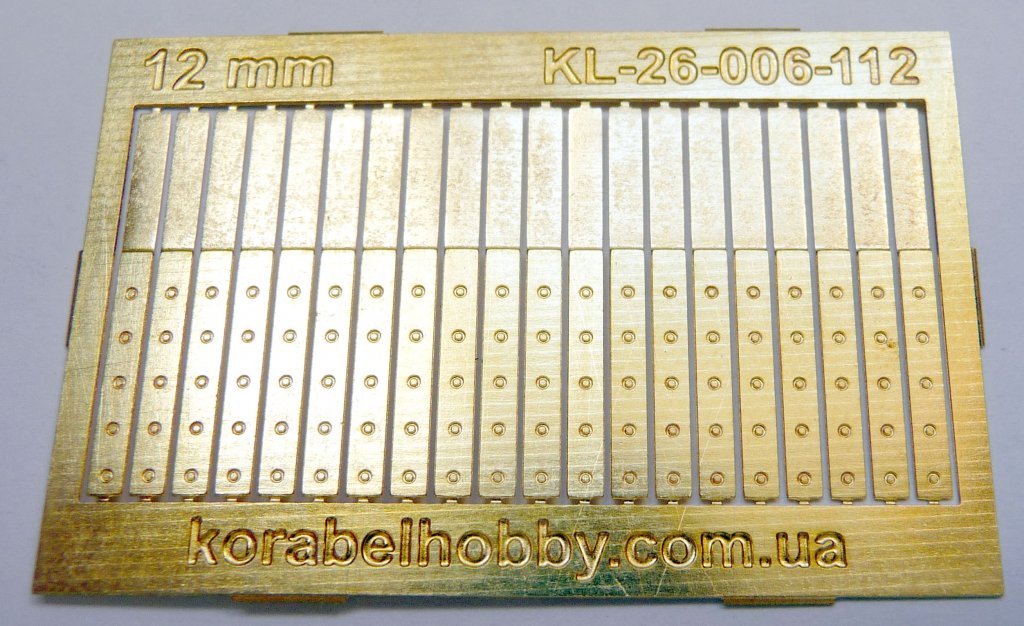 Петли для пушечных портов, длинной 12 мм, изготовленны из латуни толщиной 0,3 мм методом фототравления.