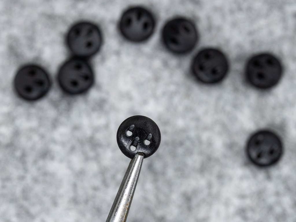 Спосіб виготовлення нарешті дозволяє нам запропонувати вам майже ідеальні юферси - форма, канавка, розміщення отворів максимально відповідають реальним юферсам. Отвори функціональні і мають стале розміщення від юферсу до юферсу.