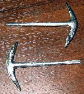Якоря бывают разными и способы изготовления их моделей тоже бывают разными. Рассмотрим изготовление якоря российского военного корабля середины 19 века в масштабе 1:100. Опять же в силу сложившихся традиций, пристрастий и, следовательно, навыков будет рассмотрен метод литья. Однако теперь форма для литья будет выполнена не из гипса, а из силиконового компаунда. Для начала изготовим мастер-модель будущего якоря. Для этого используем полимерную глину и каркас из бамбуковой палочки, рейки и картон...