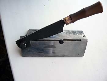 При изготовлении шарниров для пушечных портов возникла необходимость нарезания жестяных полосок одинаковой ширины и длины. Ножницами по металлу получались то шире то уже. Поэтому изготовил небольшую гильотину...