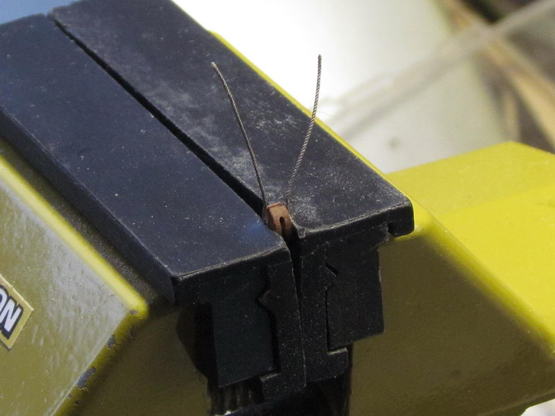 3. Надеваем огон на зажатое в тисках сверло (проволоку, да что угодно) диаметром равное огону, который мы хотим получить (здесь 1,1 мм)