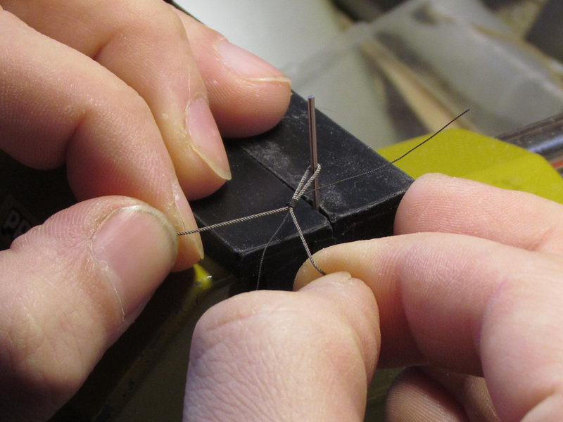 на строп накладываем нить из которой будем вязать бензель в виде такой же, как и у стропа петли