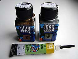Собственно, это было бы и все, но вчера, когда я расспрашивал жену о ее красках и технологии нанесения, она еще вытащила несколько коробок и продемонстрировала мне специальные краски для керамики стекла. Ниже они показаны на фото: