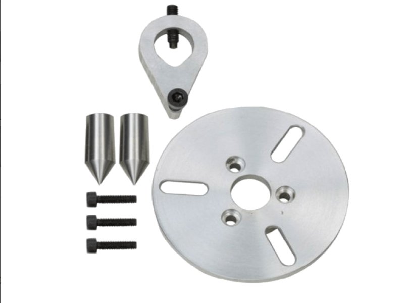 В комплект входят: 1 поводковый патрон, 2 фиксированных центра (МК 2 и МК 1/короткий), 1 планшайба. Упаковано в деревянную коробку.