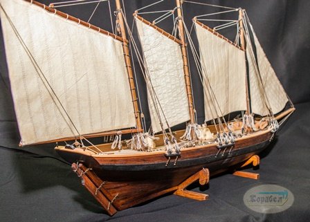 Реконструкция рыболовецкой трехмачтовой гафельной шхуны была сделана по архивным материалам.
