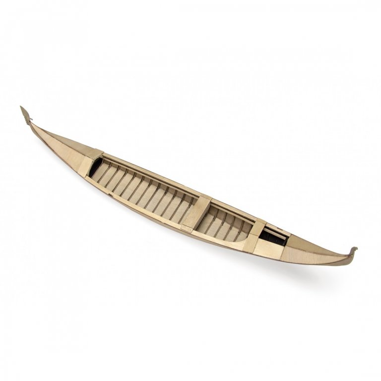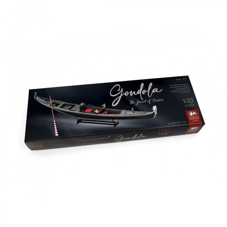 Набор включает детали, выполненные с помощью лазерной резки, фототравления, красный бархатистый материал для отделки сидений и внутренней части гондолы, литой металлический фонарь и литую уключину из смолы.