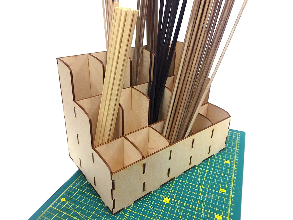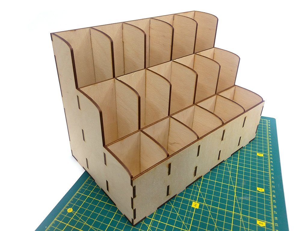 Внесены изменения в конструкцию органайзера на фото - увеличена высота поперечных перегородок, что уравняло их с промежуточными перегородками.