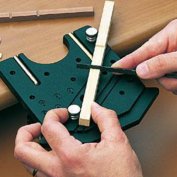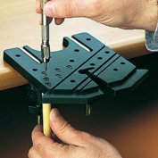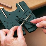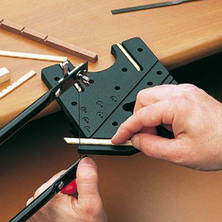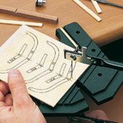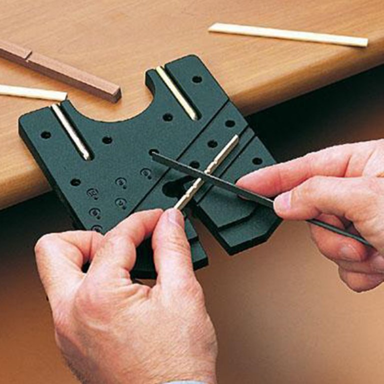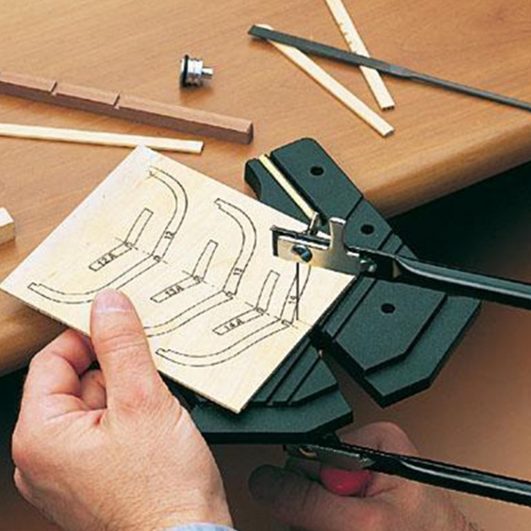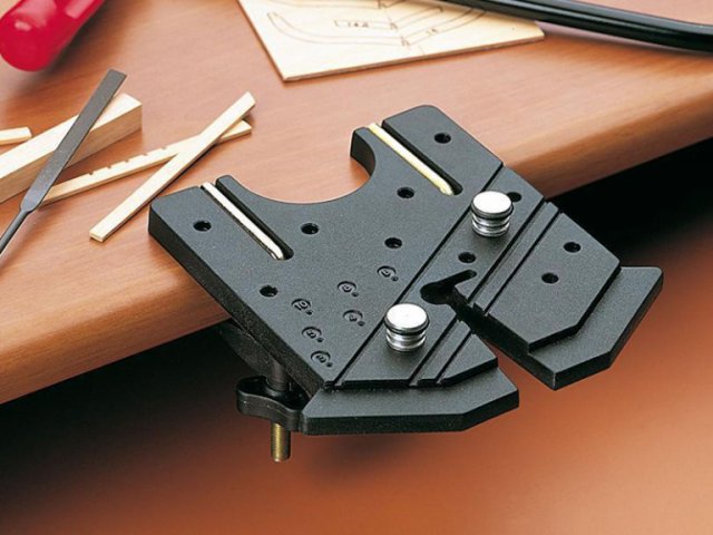 755.00 грн. КУПИТЬДля чего будет полезен этот инструмент? Во-первых, для зажима тонких и широких реечек при изготовлении в них всевозможных пропилов. Рейка просто вставляется в наиболее подходящий паз, и делаются нужные пропилы. Во-вторых, имеющиеся два упора позволяют расположить деталь (чаще всего толстые рейки квадратного сечения) под необходимым углом к краю и сделать нужные пропилы или обработать торец. В-третьих, с нижней стороны сделаны специальные глухие отверстия различного диаметра, у которых точно по центру сделано сквозное отверстие диаметром около 1 мм. Это позволяет делать отметки или зенковки точно по центру торца круглых заготовок рей или мачт. И, конечно, этот инструмент будет незаменим при выпиливании заготовок лобзиком. Производитель - фирма Amati.