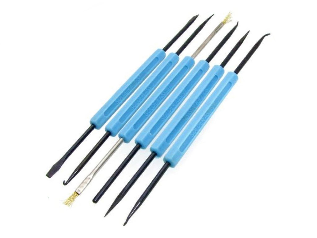 Набор из шести специальных двухсторонних стек/приспособлений. В наличии удобные разные крюки для проводки такелажа, щеточка, гвоздодер и даже ось для навивки пружинок. Очень функциональный набор для судомоделизма, учитывая на сколько разнообразные задачи возникают перед нами.