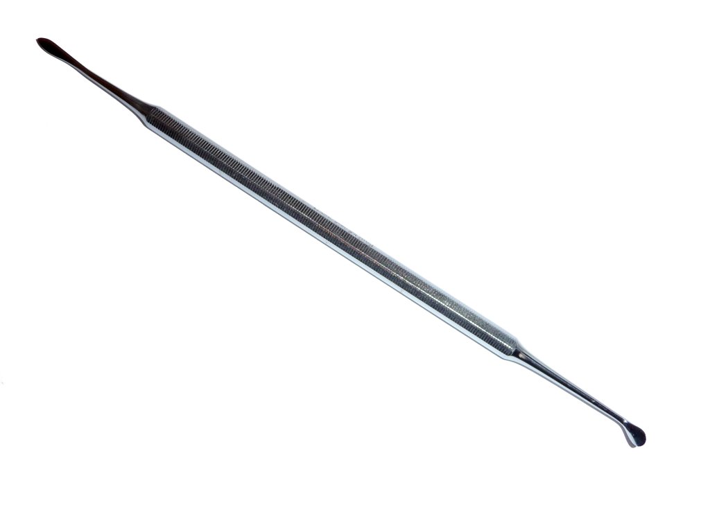 Медицинский стальной стек с одной стороны имеет копьевидный кончик, а с другой загнутый под 45 градусов каплевидный. Используются при работе с эластичными материалами для лепки и придания формы, а так же для размешивания и прочего.
