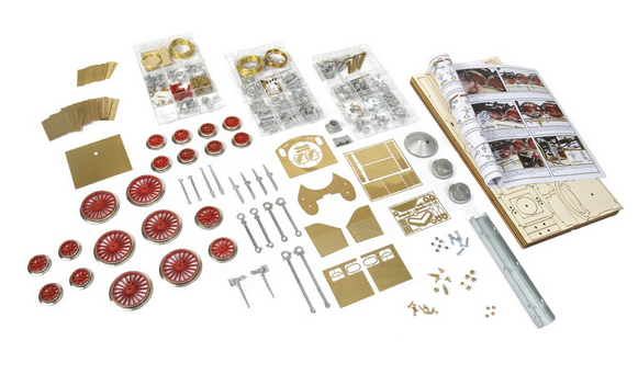 Испанская фирма OcCre предлагает модель паровоза BR-18 в масштабе 1:32. Сборная конструкция собирается из деревянных каркасных деталей, уже вырезанных лазером и затем обшивается латунными пластинами и укрепляется гвоздиками, присутствующими в наборе. Большинство навесных деталей литые из металла, а наиболее тонкие и ажурные элементы даны фоторавленными из листов латуни. Сборка кабины машиниста представляет собой отдельный маленький проект, т.к. там множество поручней, люков, надписей, трубопроводов, клапанов, ручек, приборов управления и контроля. Всё это выполняется из дерева, формованных и фототравленных латунных деталей. Великолепные, яркие и чистые колеса из пластика с металлическим ободом крепятся на латунные оси. Весь механизм управления колесами, обеспечивающий их синхронное вращение, сделан подвижным. Все его элементы из металла, соединяются между собой винтами, гайками и шайбами. Подобным же образом выполняется и тендер (вагончик с углем), который практически полностью обшивается латунными листами, а для имитации угля в наборе прилагаются мелкие камешки. Венчает всё это великолепие подробная пошаговая инструкция с цветными фотографиями (более двухсот пятидесяти штук), что сделает процесс сборки не только интересным и увлекательным, но и беспроблемным. Колея 45 мм (стандарт G-45).